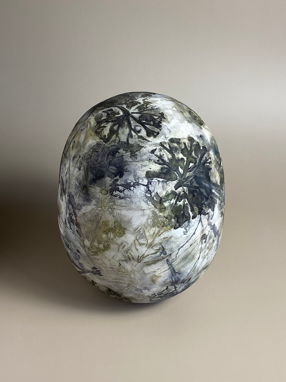 While the majority of my eco printing has been done on paper (you can find them at here), I couldn't resist combining it with my passion for clay. The pieces below are bisqued white stoneware, eco printed with various leaves and flowers. I anticipate the unwrapping of boiled pieces, like a kid anticipates opening presents at Christmas. You never know for sure what you are going to get. When the pieces are unwrapped, the transformation continues: certain colors fade, others appear, new shapes come through as the moisture dissipates. Each piece is completely unique. I am not looking for a literal depiction of plants, I hope to see and reveal something less obvious and more mysterious about them and impart something of myself as a co-creator.